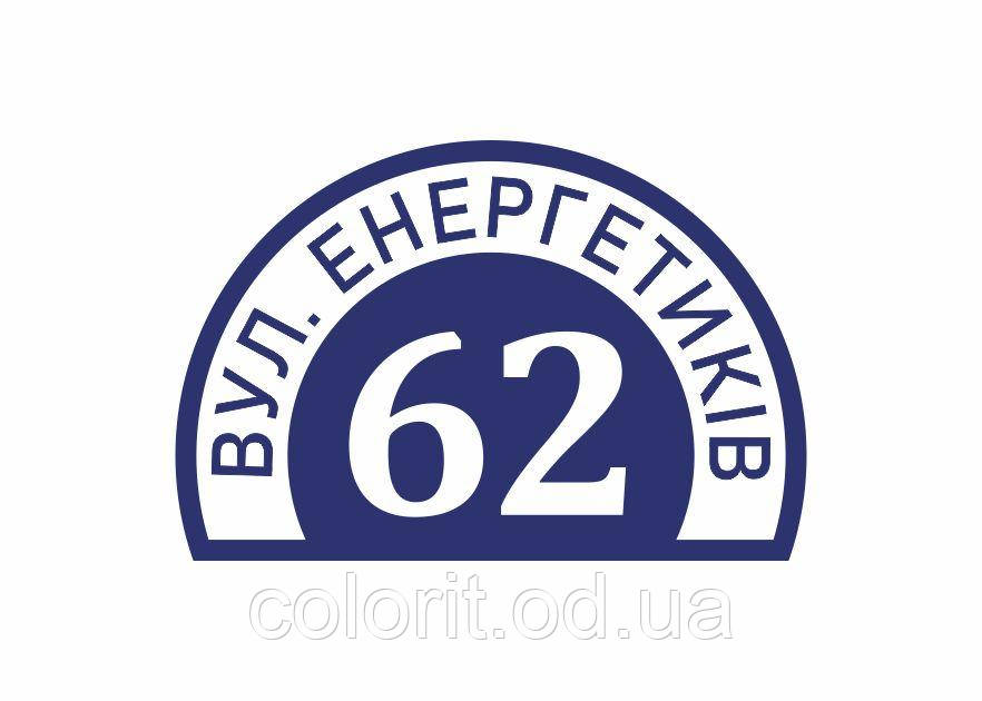 Табличка адресна може бути виконана в різних кольорових схемах і з різними розмірами в залежності від Ваших потреб. Розміри даної таблички - 450х300 мм. Основа виготовлена з пластику ПВХ 3 мм, друкуються зображення у високому дозволі. Виготовлення на замовлення. Термін виготовлення 3-5 дні. Доставка по всій Україні.